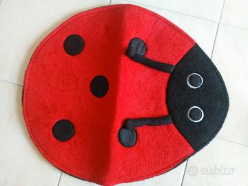 Set bagno composto da tappettino- scendidoccia sagomato a forma di coccinella con manopola coordinata. Dimensioni tappeto cm 60 x 52. Misto cotone con leggera imbottitura. €8