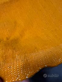 Tappeto fatto a mano in Marocco in fibra naturale, si nota dalla trama irregolare. (Vedi foto) Misura 300 cm x190 cm Colore giallo oro tendente all’arancio chiaro