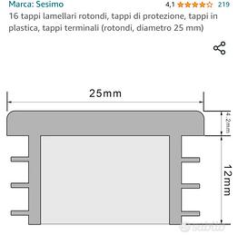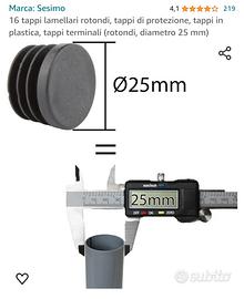numero 8 tappi lamellari rotondi in plastica colore nero marca sesimo, acquistati su Amazon. tappi terminali per sedie diametro 25mm