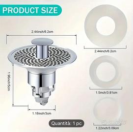 * Design 2-in-1 Innovativo: Funziona come un tappo a pressione per trattenere l'acqua e, allo stesso tempo, come un efficace filtro anti-intasamento.