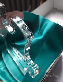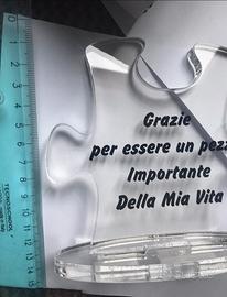 Targa in plexiglass a forma di puzzle con dedica. In scatola con stoffa di raso verde Misure come da foto
