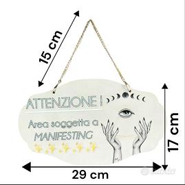 La Targa Porta Manifesting è pensata per chi vive l’energia, le intenzioni e la legge dell’attrazione come parte del proprio quotidiano. Posizionata sulla porta, diventa un segnale chiaro e potente: “Attenzione! Area soggetta a Manifesting” — un invito a chi entra a mantenere vibrazioni alte e mindset positivo.