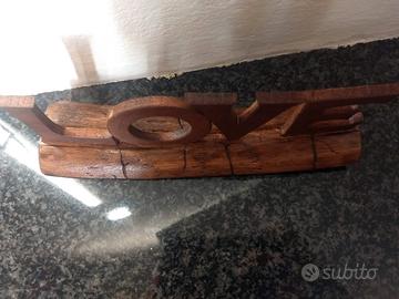 SCRITTA IN LEGNO DA APPOGGIO "LOVE" DECORATIVA IN LEGNO DI QUERCIA E BASE IN TRONCHETTO DI ULIVO PER ARREDARE QUALSIASI STANZA.