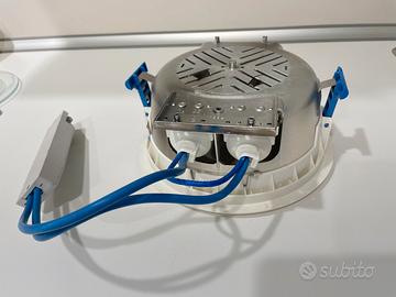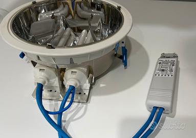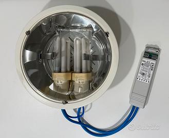 Vendo faretto non a led, usato, da incasso per controsoffitti cartongesso o muratura. Ideale come illuminazione per uffici ma anche per abitazioni. Luce naturale ben diffusa grazie al vetro satinato opaco. Lampadine non incluse o se incluse potrebbero essere non funzionanti. Dotato di alimentatore. Prezzo riferito al singolo faretto. Disponibili ancora 2 faretti.