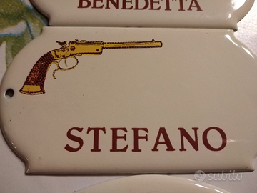 Targhe fuoriporta in metallo smaltato con nome nuove in perfette condizioni, il prezzo si intende singolarmente