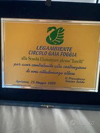 Bellissima targhetta commemorativa di Legambiente, ricevuta ad Apricena il 25 Maggio 2000.