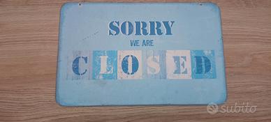 Vendo targhetta in ferro Maison du Monde, stile vintage marino, doppia faccia con scritte OPEN e CLOSE, perfetta per decorare negozi, studi creativi o semplicemente aggiungere un tocco originale a casa.