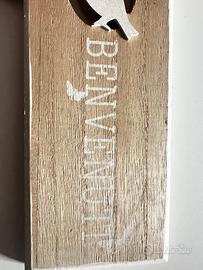 Targhetta in legno con la scritta benvenuti di circa 20 cm di lunghezza e 8 larghezza