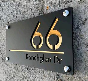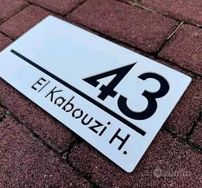 realizzazione di targhette di varie misure e colori per numero civico e indirizzo , casa, ufficio , azienda , negozio , personalizzabili a richiesta del cliente , misura più piccola a partire da 20x14cm a salire .bianca , nera opaca, nera lucida con numero in oro lucido .