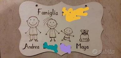 È possibile farmi fare delle targhette personalizzate, uniche e speciali di diverse misure con dei nomi e delle immagini stilizzati. Possono diventare dei regali speciali, particolari e unici per la propria famiglia e quella degli amici, parenti e colleghi del lavori etc. Se sono più di due targhette sul totale faccio uno piccolo sconto.