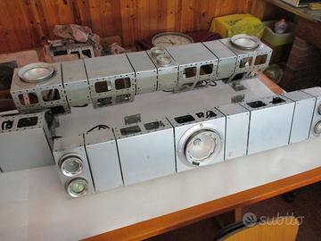 STRUTTURA TARGHETTI ILLUMINAZIONE COMPOSTO DA 6 ELEMENTI DA CONGIUNGERE E DA INSTALLARE A SOFFITTO SEPARATAMENTE E COMPLETI DI FARI IODIO GRANDI E FARETTI G4 TUTTI ORIENTABILI E MODIFICABILI , MISURE: