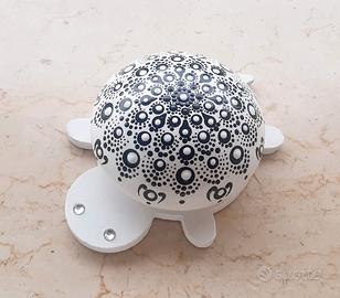 Diametro carapace 10 cm. In gesso alabastrino dipinta con tecnica del puntinismo. Interamente fatta a mano.