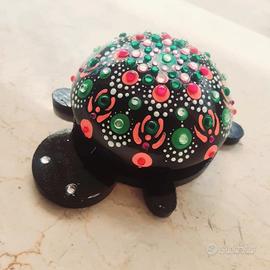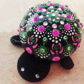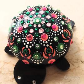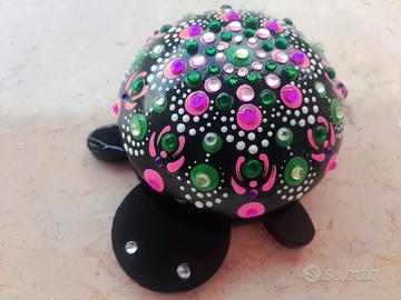 In gesso alabastrino dipinta con tecnica del puntinismo con aggiunta di strass