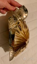 Vendo soprammobile TARTARUGA MARINA IN RESINA ARGENTATA, CON APPLICAZIONI IN VETRO E PUNTI LUCE; DECORAZIONI FLOREALI COLOR SEPPIA, firmata GAI MATTIOLO, anno 2012. MISURA ca H 21 X 8 X 12 CM. Era un regalo quindi non ho più la scatola