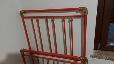 Come da titolo, vendo testata e pediera antiche in ferro battuto, color salmone con dettagli dorati. Per letto singolo, vedi misure sotto. Normali segni di usura dovuti all'età, buone condizioni generali. NON dispongo delle traverse di collegamento. Larghezza 88 Altezza testiera 160, pediera 110 Profondità 22 Altezza piedi 37 Misure ovviamente espresse in cm. Posso consegnare previo accordo. Disponibile anche via whatsapp.