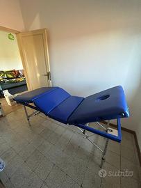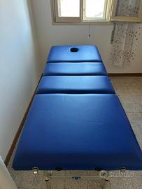 Lettino pieghevole e portatile, in ecopelle disinfettabile, blu elettrico, con maniglie di trasporto e piedini per lo stoccaggio. Prezzo trattabile.
