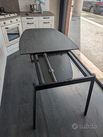 Tavolo dotato di un'allunga interna con apertura a libro, in laminato in tinta con piano.
