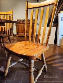Vendesi arredamento completo per taverna in pino naturale massiccio, composto da: armadio con vetrina, mobiletto a due ante, mobile a parete con ante e cassetti, tavolo allungabile e n.3 sedie. Il tavolo chiuso misura 150x90cm, aperto 210x90cm. Tassativo si vende tutto completo, no singoli pezzi.