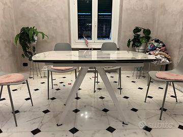 Tavol in vetro ceramica effetto marmo +sedie