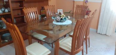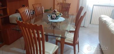 Tavola calligaris in cristallo e ciliegio con 6 sedie