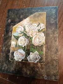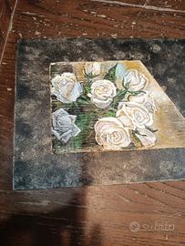 tavola su tela con rose bianche dipinto a mano con colori acrilici misura 24X30