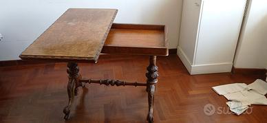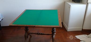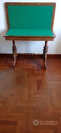 Affare tavola da gioco o da arredo in radica di noce periodo '900, altezza cm72, cm49x99 chiusa, cm95x98 aperta, feltrino verde impeccabile senza difetto.