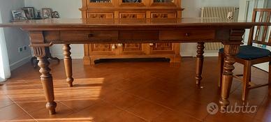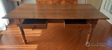 Tavola da pranzo in noce di inizi secolo scorso restaurata a nuovo una ventina di anni fa. Il piano della tavola è smontabile tramite le spine situate ai lati. Quindi nonostante il peso e le dimensioni è facilmente trasportabile. Il tavolo è alto 79 cm largo 99 cm e lungo 200 cm.