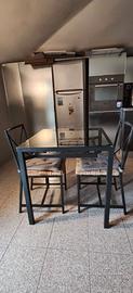 Robusto tavolo ferro e vetro, ben conservato. Le sedie sono solide e comode.