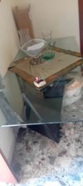 tavola di vetro con piede incrociati neri usata ma ottima smontaggio eritiro a carico dell acquirente