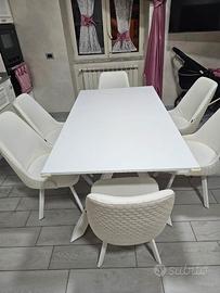 Vendo Tavolo Mod. Infinity 160 con piano melaminico allungabile spessore 1.8 colore bianco opaco finitura struttura metallo bianco opaco + 6 Sedie Mod. Grace in ecopelle bianco struttura Q colore Bianco