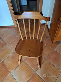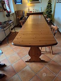 Tavola in legno massiccio, allungabile come da foto, colore chiaro, comprensiva di sedie stile country con cuscini su misura, adatta per taverna, per casa di montagna o per saloni ricreativi