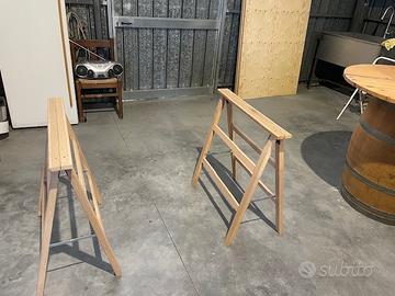 Tavola in legno con cavalletti da appoggio per quando serve un appoggio in piu' e per quelle occasioni in cui serve un altro tavolo per gli ospiti. Dimensioni: Lunghezza 210cm, larghezza 105cm, Spessore 2,5cm.
