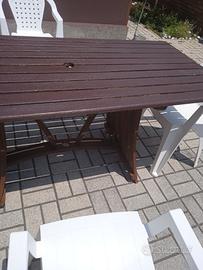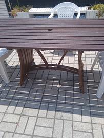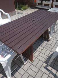 tavola in legno riverniciata da poco ancora in buone condizioni e si può inserire l ombrellone.