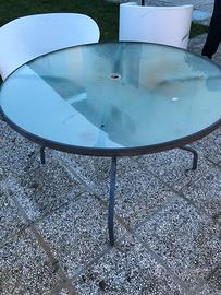 Come da foto e descrizione annuncio tavola usata in giardino con struttura metallica un po sbiadita dal tempo e anni