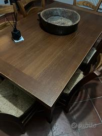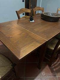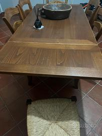 Tavolo in arte povera legno massiccio, composta da 8 sedie . Misura da chiusa 1.40 cm e da aperta 2.20 cm , larghezza 85 cm.