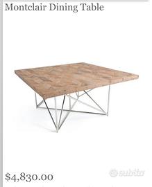 Pregiata tavola con piano in legno 160x160, h 77,5 cm, piedi in acciaio, disegno moderno.