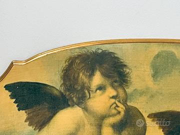 Tavola Putti Raffaello Tratto dalla Madonna Sistina. Dipinto a mano su legno. Ideale per camera bambini Misure 39x42