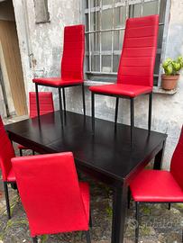 Bellissima tavola e sedie moderna allungabile x cucine Misura 1,40 x 80… Aperto 2,20 Colore Wenghe 6 sedie in ecopelle con piccoli difetti evidenziati in foto