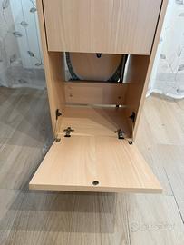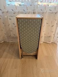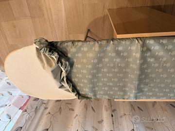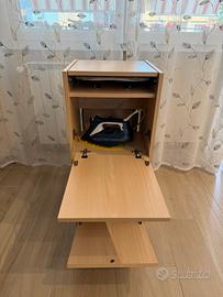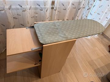 Tavola stiro robusta a scomparsa con rotelle in perfetto stato con copriasse removibile. Misure: H. 87 L. 39 P. 37 Tavola lunga 100, Larga 34 Non spedisco.