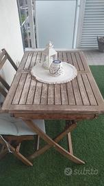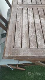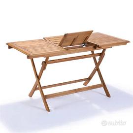 Tavolo da esterno pieghevole con prolunga aggiuntiva centrale come da foto illustrativa. In buone condizioni, solo da verniciare, dimensioni 70x90/120