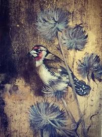Splendida tavoletta in foglia oro con dipinto, 17x44 cm, patina anticata che la rende molto particolare