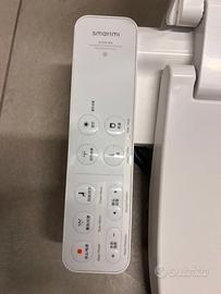 Sedile WC per bidet riscaldato intelligente con telecomando integrato della marca smartmi (Xiaomi) Tubo di alimentazione dell'acqua + filtro + cavo di alimentazione. con il telecomando è possibile: - accendere/spegnere le funzioni della tavoletta - accendere/spegnere la luce interna - accendere/spegnere il getto per la pulizia delle parti intime - regolare la temperatura dell'acqua del getto - regolare la posizione del getto - regolare la pressione dell'acqua del getto - regolare la temperatura della seduta della tavoletta