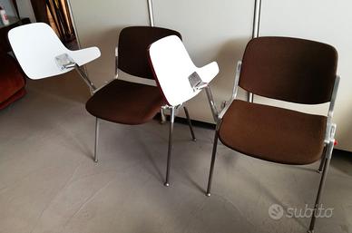 disponibili 8 tavolette originali, anonima castelli. per sedia dsc 106, by Giancarlo Piretti. anni 70. struttura in alluminio come le sedie, piano in laminato bianco di forte spessore. si imbullonano alle sedie con le stesse viti gia' in sede nella sedia. le viti infatti sono gia' predisposte piu' lunghe atte a supportare le tavolette. ripieghevoli ed estremamente robuste. prezzo cadauna. 20 € + spedizione da concordare.