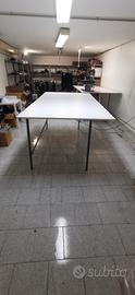 tavoloni bianchi ideale per lavorare in piedi, misure: lunghezza 250cm larghezza 125cm altezza 105cm uno di questi è dotato anche di pianale sotto