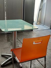 n 7 tavoli in vetro crecle dimensioni 80x40 con abbinato N 15 sedie arancio della BM impilabile