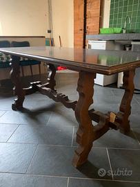 Vendo due tavoli: il primo per soggiorno e/o ufficio misura cm 180 x100, era utilizzato come scrivania in ufficio ma può essere usato anche per ambienti abitativi. Prezzo € 250,00 (prime tre foto); il secondo è un tavolo antico, mod. frattino, misura cm. 180 x 80. Prezzo € 100 (ultime tre foto).