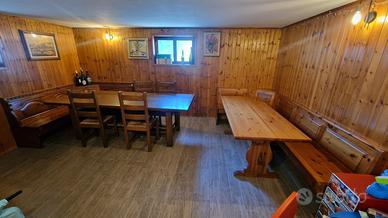 tavoli con sedie e panche in legno