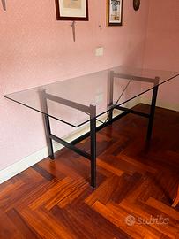 Tre tavoli in cristallo con base nera in metallo