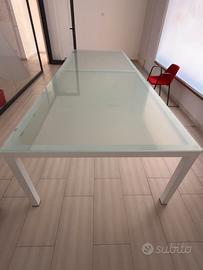 Vendesi tavoli da ufficio/riunione in ferro e vetro come da foto. Disponibili in due misure: - mt 3,65 x 1,30 (in foto): €1.000,00 - mt 2 x 2: €800,00 Scrivete pure per informazioni. Sono molto pesanti, quindi non posso spedire.