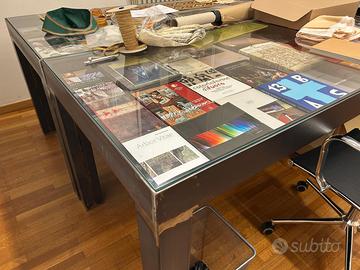 Vendo 4 tavoli di design in stile industriale, struttura in ferro e piano in vetro trasparente che funge da contenitore, ideale per esporre oggetti, decorazioni o merchandising. Perfetti per negozi, taverne, uffici, pub, loft o sale riunioni. Set composto da: • 2 tavoli grandi - dimensioni indicate in foto • 2 tavoli piccoli - dimensioni indicate in foto •Condizione: molto ben conservati Vendibili anche singolarmente, per acquisto del lotto regalo 4 sgabelli in stile abbinato. Per prezzo contattatemi 3389862465 Ritiro: Bergamo Contattami per foto dettagliate e info